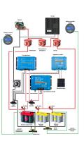 L'olandese invece e' stato onesto e lo ha dichiarato subito. Brutte notizie quindi, e' tutto fermo, nel frattempo ho aggiornato lo schema includendo un secondo Battery Monitor BMV-712 Smart. In questa configurazione occorre "sorvegliare" in maniera puntuale anche la batteria motore per gestire con precisione le soglie di attivazione del DC/DC charger. Inoltre il battery monitor, per quanto brutto e poco leggibile, ha il vantaggio di avere una parvenza di gestore eventi. Al verificarsi di una certa condizione, ad esempio il valore massimo o minimo di temperatura o del voltaggio delle batterie, puo' attivare/disattivare un rele'. Ho intenzione di utilizzare questa funzione per staccare sulla batteria motore il caricabatterie IP43 e lo SmartSolar, su quella servizi il DC/DC charger, in caso di aumento ingiustificato della temperatura delle stesse. In questo momento sono installati sulla barchetta lo SmartSolar 75/15, un BMV-712 Smart con sensore di temperatura. Domani arriva il caricabatterie a 220V Phoenix IP43 30A (1+1). Quest'ultimo e' un caricabatterie doppio in un unico contenitore, 30A per le batterie servizi e 3A per quella motore.[hide]