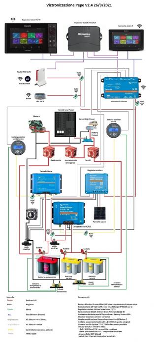 Ecco un nuovo upgrade della barchetta, almeno per quanto riguarda la parte elettrica ma, lo vedremo in seguito, con impatto anche sull'elettronica di bordo. La novitá consiste nell'introduzione di uno switch fast ethernet a 8 porte Raymarine Seatalk HS (la vecchia denominazione del Raynet). Nella precedente configurazione i 2 Axiom di bordo (il 7 in dinette ed il 9 Pro in pozzetto) comunicavano con un un cavo Raynet, mentre il Victron Cerbo GX era connesso al Pro utilizzando la seconda porta Raynet di quest'ultimo. Con l'introduzione dello switch, tutti gli oggetti di bordo con una porta ethernet sono connessi a quest'ultimo. Cosa ci ho guadagnato: l'applicazione Victron presente sugli Axiom funziona ora anche sul 7 in dinette, collegandosi in WiFi ad uno degli Axiom utilizzando l'app RayControl, il mio iPad continua ad essere connesso ad internet mentre nella configurazione precedente questo non avveniva. Non ultimo la configurazione mi pare un bel po' piú elegante, ma questo puó essere catalogato tra le "pippe mentali" delle quali sono notoriamente il Gran Visir.