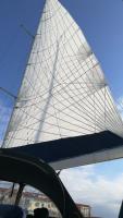 Ho fatto impiombare un loop lungo 12 ma. per l'avvolgitore del code ed ho constatato che adesso dal pozzetto chiudo il cruising code agevolmente e dato che è sconsigliabile tenerlo su avvolto ho disegnato e fatto realizzare una sacca da ponte che si è rivelata di uso razionale. Anche la trinchetta ha la sua sacca lunga da ponte per poter tenere la vela in coperta già ingarrocciata e le proprie scotte collegate.