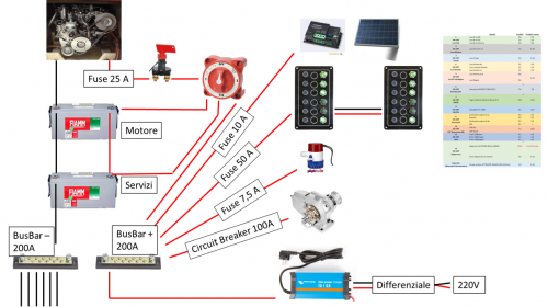 ...in aggiunta pensavo che forse sulla batteria direttamente collegherei la pompa di sentina e il pannello FV, altrimenti a batterie scollegate sono tagliati fuori una dall'intervenire in automatico se necessario e l'altro dal ricaricare la stessa batteria. Sbaglio?