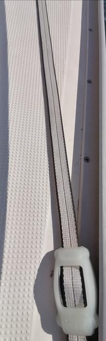 Ho due golfari in coperta all altezza dell inizio tuga verso prua e due golfari in coperta ai lati del pozzetto, più o meno dove termina lo Sprayhood. Dato però che mettendole in tensione interferivano troppo con carrelli genoa e lande, prima dei golfari poppieri ho fatto passare le fettuccie dietro alla base dell adiacente candeliere, in modo da spostare la tangenza più all' esterno. Vedo di trovare o fare delle foto.