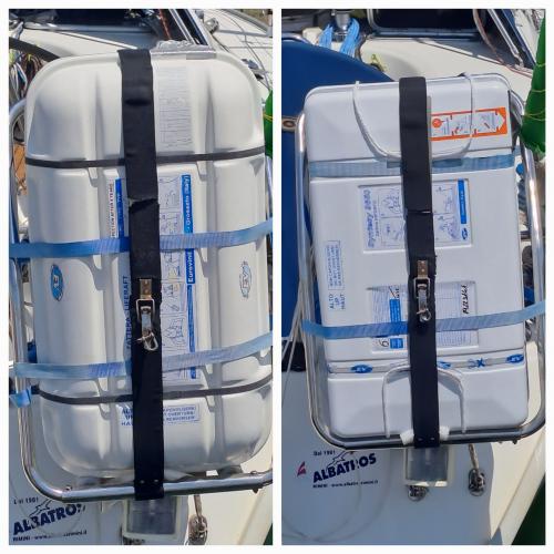 Pur avendo modificato e implementato quasi tutto negli ultimi anni, ho comunque trovato modo di applicarmi su ulteriori dettagli. Le batterie del banco servizi sono ora delle FAI sempre ad acido libero ma da 200 amp ciascuna a piastra tubolare positiva. Nell'ambito del piombo dovrebbe essere la miglior tecnologia possibile. Ho scelto queste dato che per le LI FEpo4 non sono abbastanza competente per modificare e gestire come si conviene il nuovo impianto. Sempre in materia di impiantistica ho montato lo Yacht Devices YDEG 04R che mi permette di leggere i dati motore e i relativi allarmi sulla schermata dedicata del multifunzione Axiom 9. Ancora impiantistica: le centraline MDI dei Volvo Penta della serie D2 sono abbastanza delicate, la Volvo le ha modificate internamente svariate volte negli anni, tant'è che il numero di serie del ricambio è cambiato anch'esso varie volte. Vibrazioni e alta temperatura sembrano siano i principali nemici di questo componente imbullonato direttamente sullo scambiatore di calore ( almeno sul mio D2 55 E). La mia soluzione è stata quella di far realizzare una particolare staffa in alluminio vincolata a paratia che comunque sposta la posizione della centralina solo di 3 cm verso l'esterno in modo da non dover spostare anche il complesso cablaggio in entrata e uscita dalla centralina. Il riscaldamento da una prima prova risulta molto ridotto così come le vibrazioni. Una modifica di dettaglio che si aggiunge alle numerose altre fatte sul frigo in questi anni : un "paletto" a mezzaluna che tiene in compressione le doppie guarnizioni dello sportello del frigo. Non ancora testato ma dovrebbe far entrare meno aria umida e ridurre il problema del ghiaccio sull'evaporatore. Con la bandiera italiana sono arrivate alcune dotazioni in piu'/differenti compresa la zattera che adesso è una ISO 9650 con grab- bag separato. Altre cosette: la drizza genoa in Gottifredi Softech Dyneema da 10 mm, la cima dell' avvolgifiocco in Gottifredi T90 colore arancio (medesimo colore del loop lungo dell'avvolgitore del code 65) e due copriarridatoi in tessile Columbus a protezione degli arridatoi delle alte per evitare di rovinare le scotte genoa. Fatto anche amantiglio e cime bilancino passerella in Dyneema per togliere l'elasticita'.