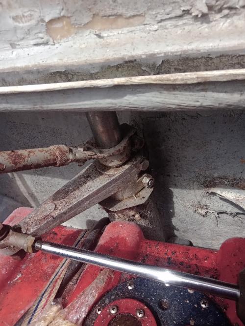 Se hai la barra che si alza (quasi scontato), farà perno su un cubotto di bronzo che in qualche modo sarà sidale all'asse del timone tramite spina, vite /morsetto etc.