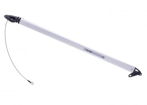 La particolarità è quella specie di "maniglia", premendo un lato si alza un perno sul lato opposta che permette la regolazione dell'altezza del boma. Ignorate la cimetta arancione avvolta, il circuito era ancora da montare. Lei poi va al 4:1 in tuga |