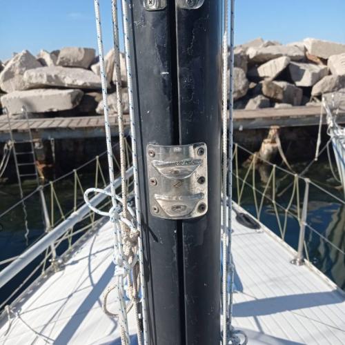 Bene, finalmente, prossima settimana l'albero verrà tolto pertanto vorrei chiedervi svariati consigli, l'ultima volta gli fú fatta manutenzione a terra era il 2008 dal precedente armatore, l'albero come la barca ha ben 44anni, quindi vorrei controllare tra le superfici di contatto qualunque cosa che ad oggi é rivettata sopra inoltre vernicerei meglio tutto. Allego foto di alcuni particolari. Per voi ha senso?.